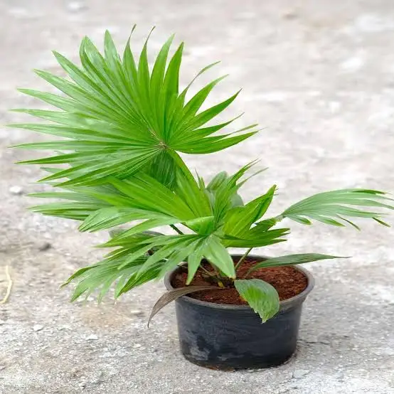 Tanaman palem hias dengan batang tunggal dan daun berbentuk kipas. Memberikan kesan tropis dan elegan pada taman.
